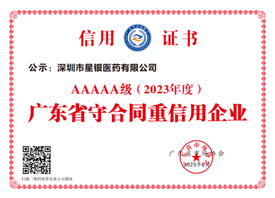 星銀醫(yī)藥榮獲“廣東省守合同重信用企業(yè)”AAAAA級,信用建設(shè)邁上新臺階